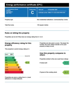 An EPC (Energy Performance Certificate) shows how energy efficient your property is, rated from A to G.